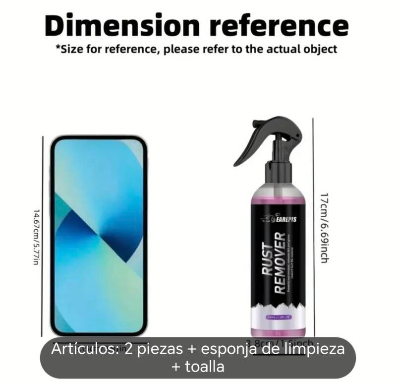 2 Piezas Kit Eliminador de Óxido de Alta Resistencia - Fórmula, Spray de Precisión para Eliminación Instantánea de Óxido en Superficies Metálicas, Barcos, Herramientas y Equipos Exteriores - Tratamiento Efectivo contra la Corrosión