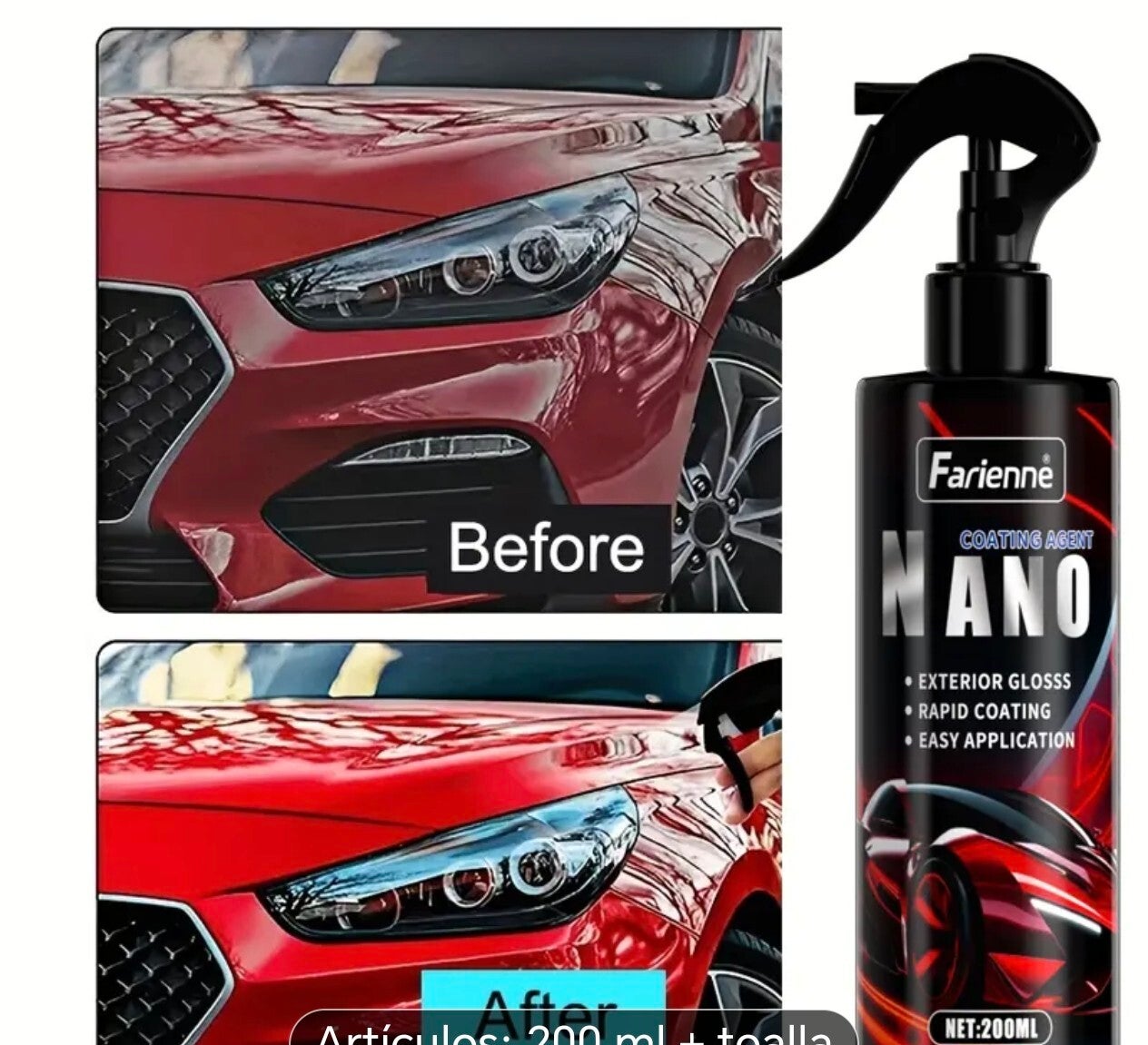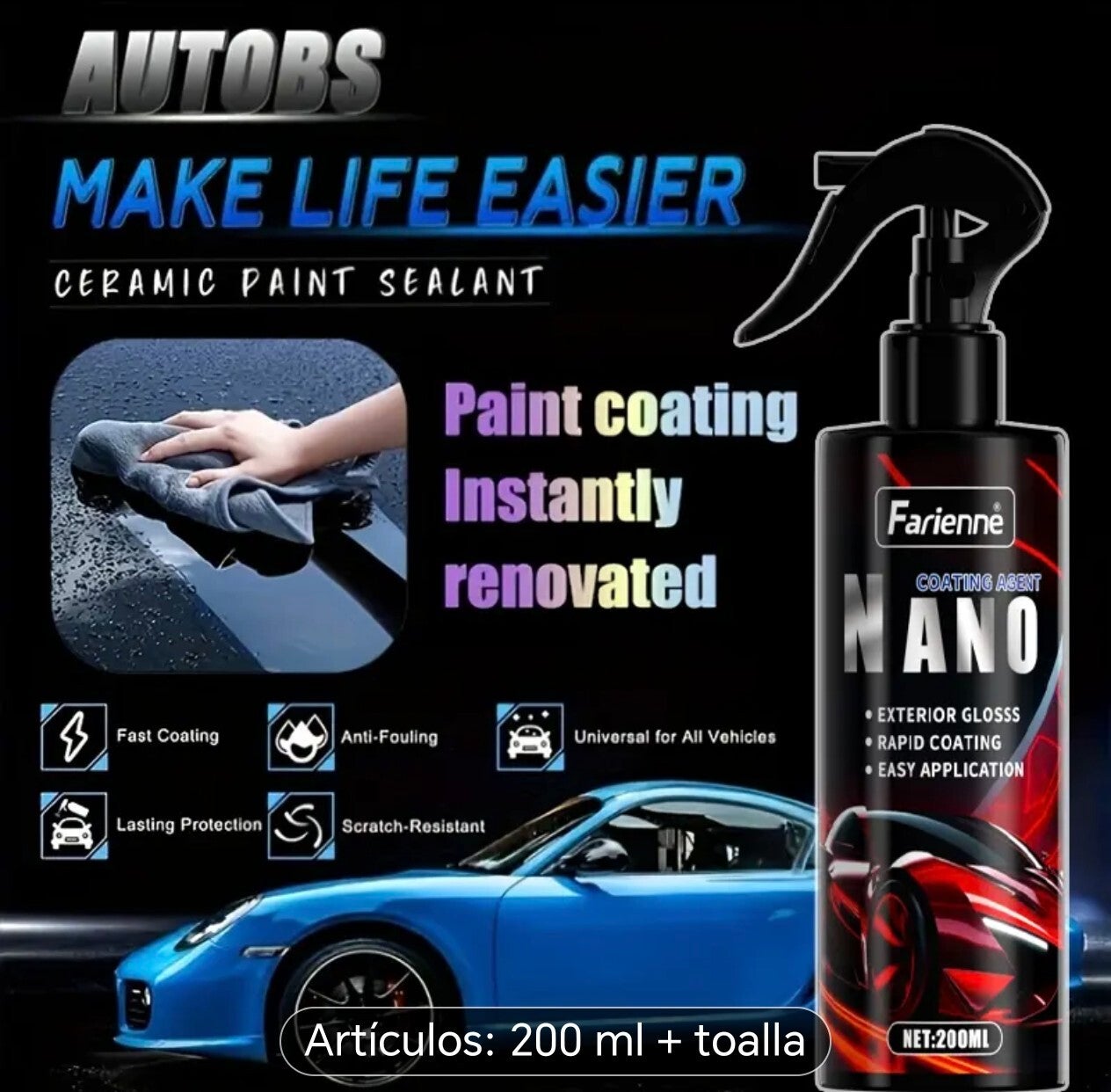 Spray Protector de Pintura para Autos y Juego de Toallas, Reparación Profesional de Rayones 3 en 1 con Recubrimiento Cerámico Nano, Aumenta el Brillo, Impermeable, Fácil Uso, Durabilidad Larga Duradera, Resistente al Clima