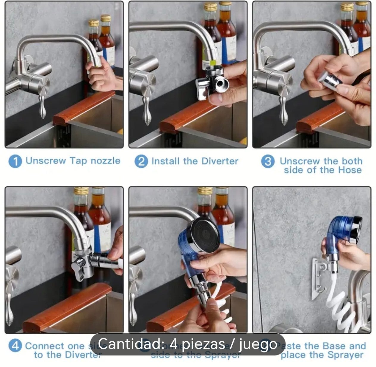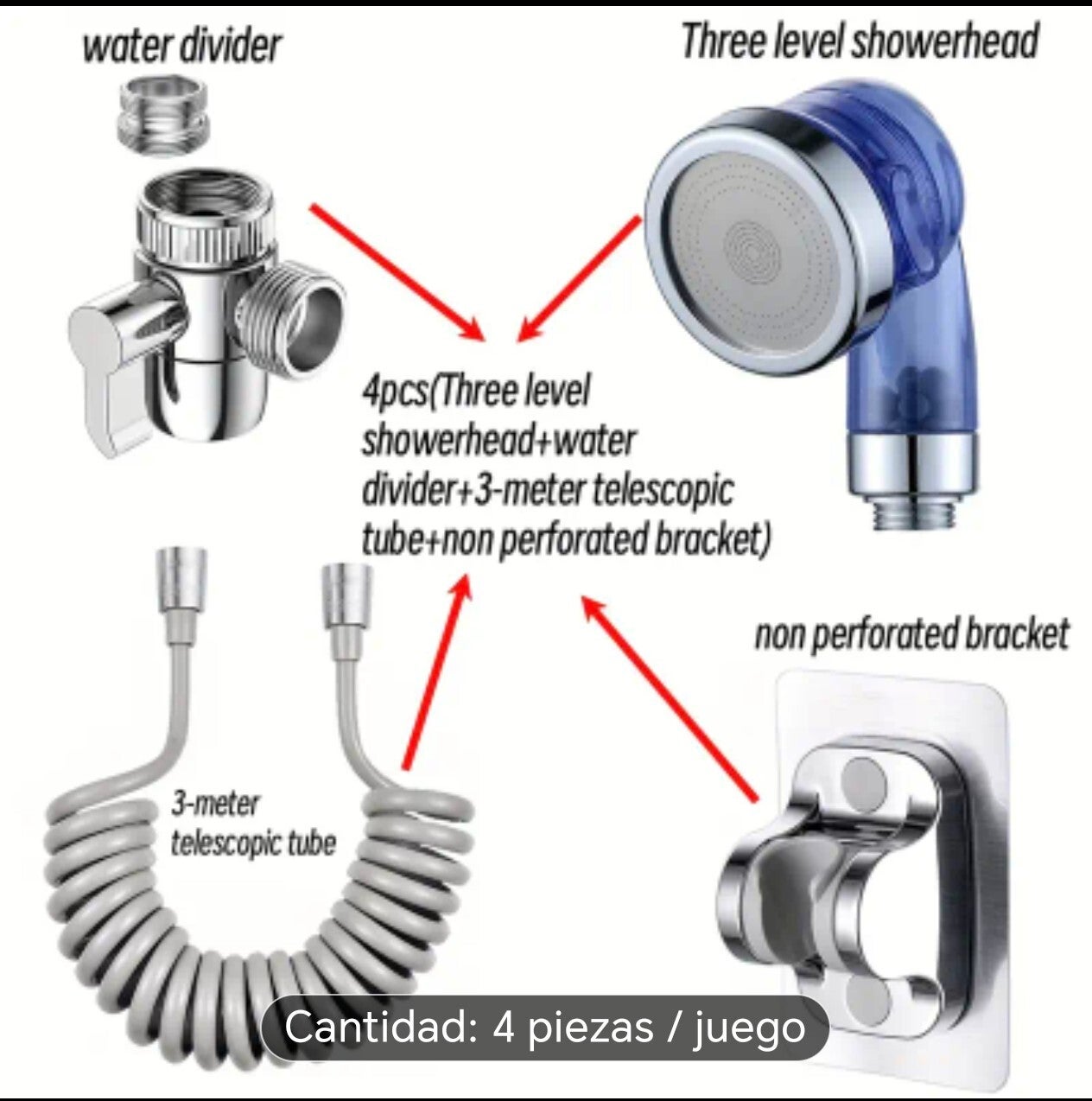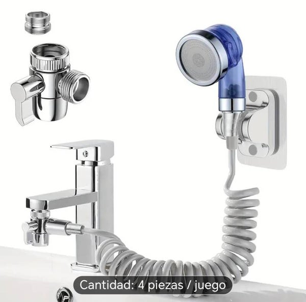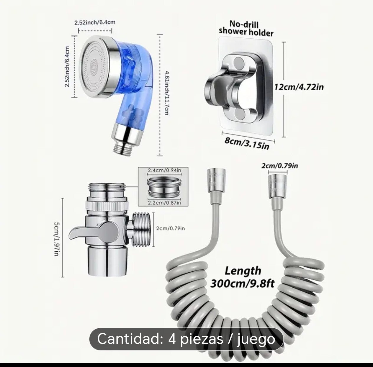 Dispersor de champú celeste de 3 intensidades + Auricular plomizo de 3 metros + Sujeción mural argéntea + Derivador de agua, 4 unidades de rociador para pileta de champú de triple régimen, Atomizador para grifo de lavabo con pulsador de mando lateral, Recambios para difusor de fregadero de peluquería, Óptimo para aseo B en establecimientos de estética de spa
